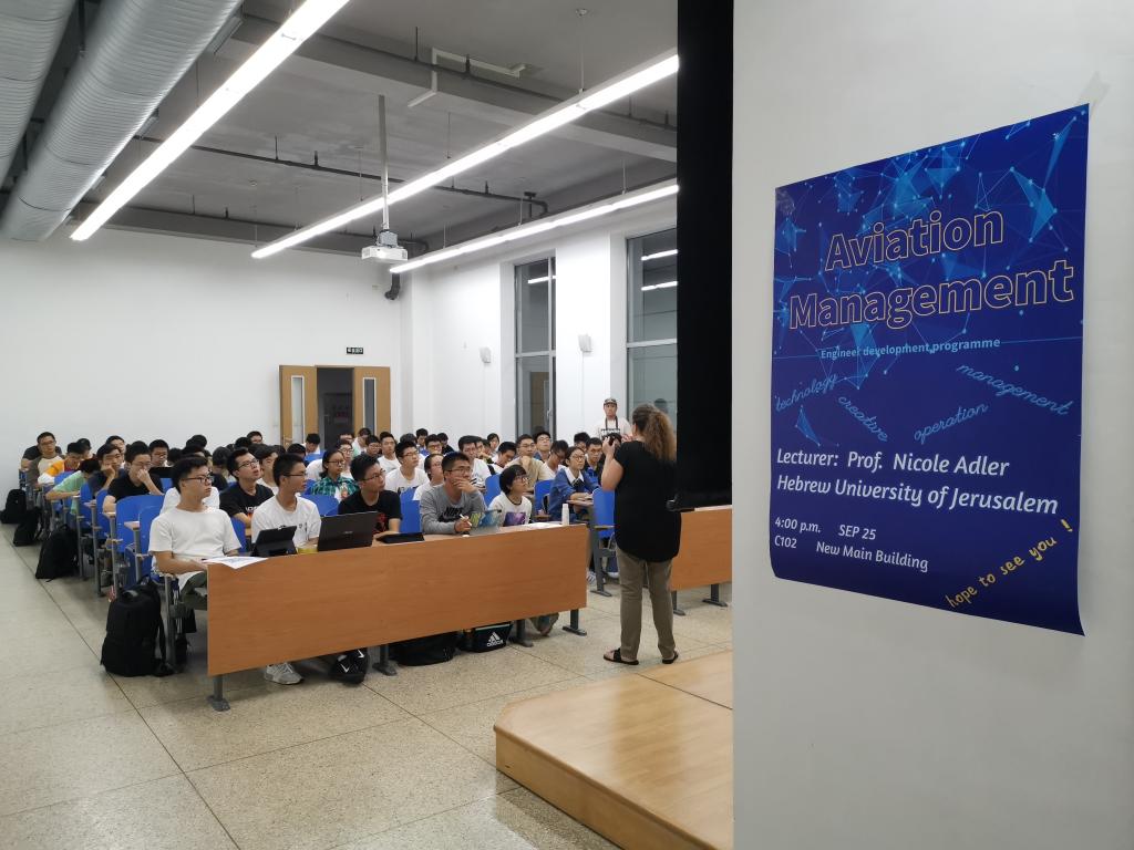 2019年9月25日晚,受国际通用工程学院副院长孙小倩老师的邀请,来自耶路撒冷希伯来大学工商管理学院的Nicole Adler教授带来了航空管理学(Aviation Management)主题讲座。本次讲座由分团委科技部承办,是本学期“工程师的养成”系列学术讲座及沙龙活动的第一讲。Adler教授是运筹学领域多个顶级期刊的副主编或编委,其中包括Omega Transportation Research Part B等国际知名高水平学术期刊。近100名国通学生参加了本次活动。