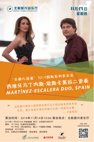 玛卡瑞娜•马丁内斯和胡安•埃斯卡莱拉都是音乐教授,各自拥有杰出的职业生涯。2014年,因为彼此对室内乐作品,尤其是对钢琴与小提琴二重奏曲目的浓厚兴趣,二人决定一起组成二重奏。马丁内斯-埃斯卡莱拉二重奏致力于以娴熟的技艺与个人魅力传播与推广西班牙音乐。二人对作品的演绎堪称完美,对待工作认真严肃,演奏忠实于作品本身,所举办的音乐会均取得圆满成功,使他们在短时间内受邀在西班牙、英格兰、意大利、捷克和斯洛伐克等地演出。
