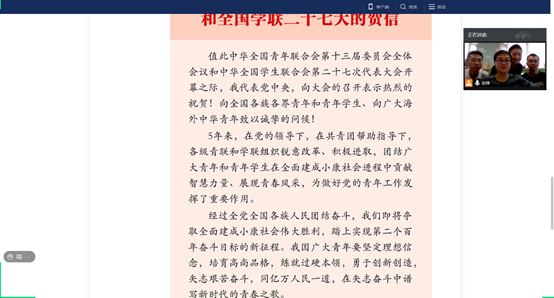 各团支部在分团委的指导下精心策划,以线上线下结合的形式,以支部或宿舍为单位开展全覆盖学习。